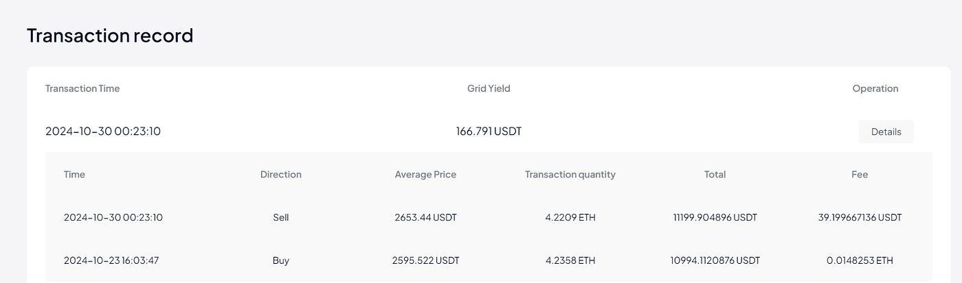 Grid profit is the sum of the grid profits generated by matched buy and sell orders that have been executed, measured in quote currency.